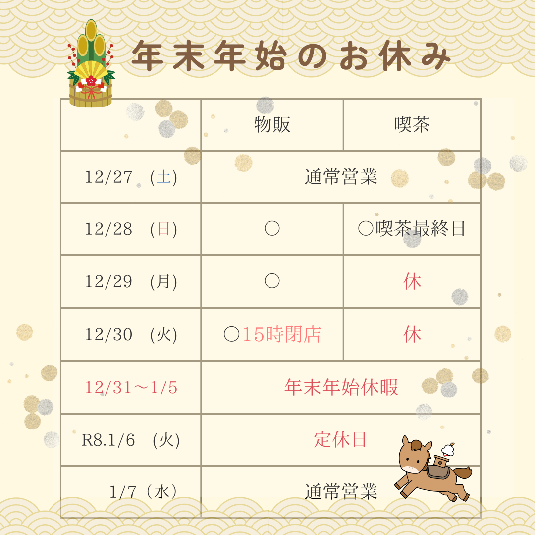 ※12/30 火曜日は臨時営業いたしますが15時閉店となります。