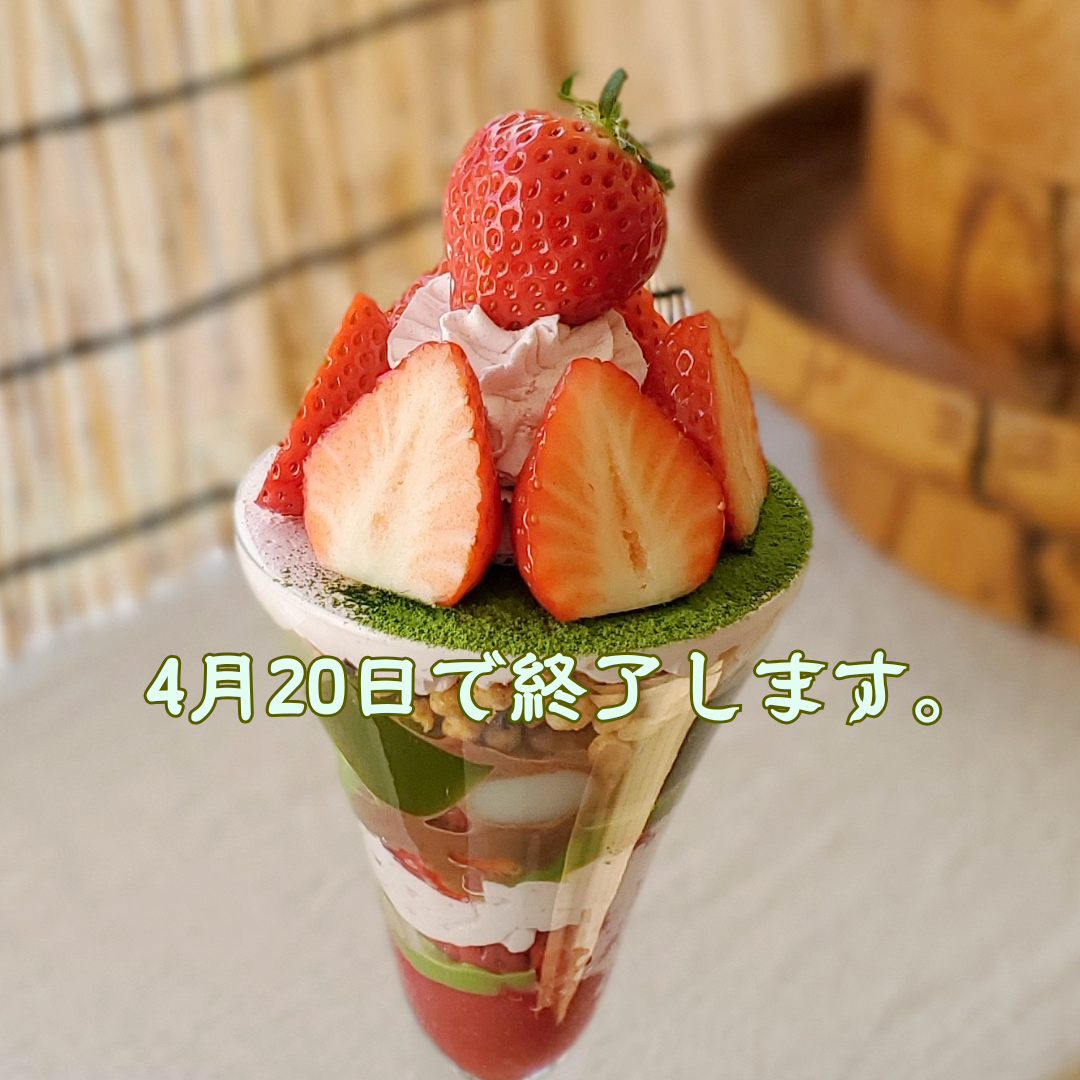 【抹茶いちごパフェ】ですが、まもなく終了(4/20まで)となります。