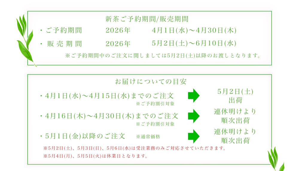 • 2026年新茶予約始まりました。