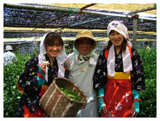 最高級のお茶は、茶園主が一年をかけて栽培し、茶摘み娘さんの手によって一枚一枚摘み取られるのです。